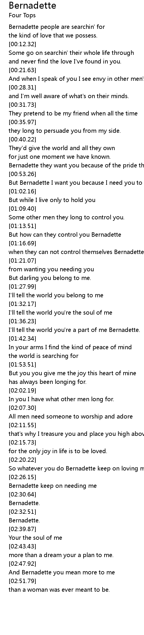| [02:48.99] | And Bernadette you mean more to me |