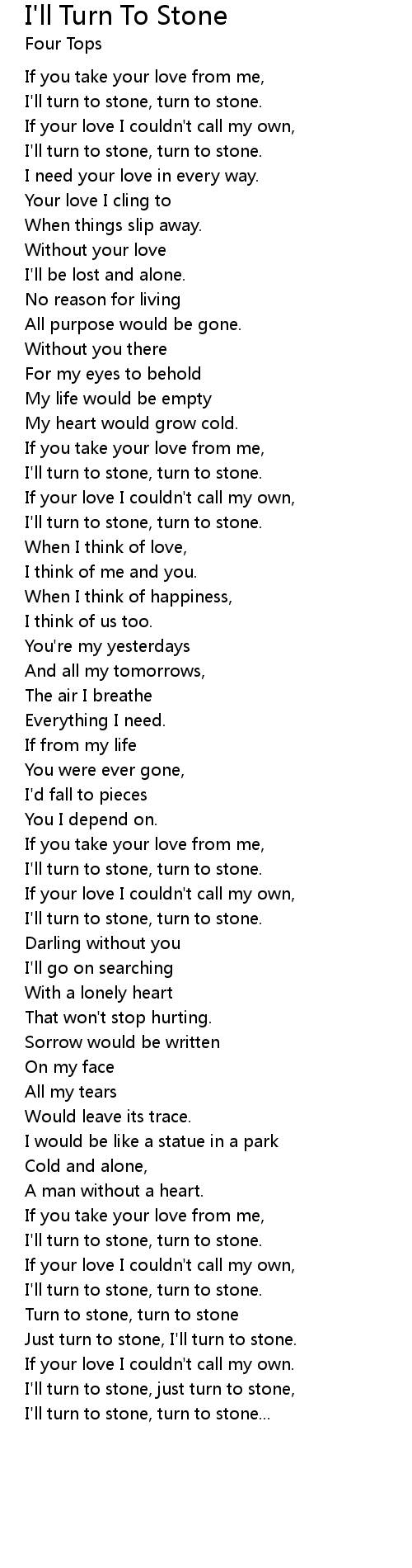| Just turn to stone, I'll turn to stone. | |