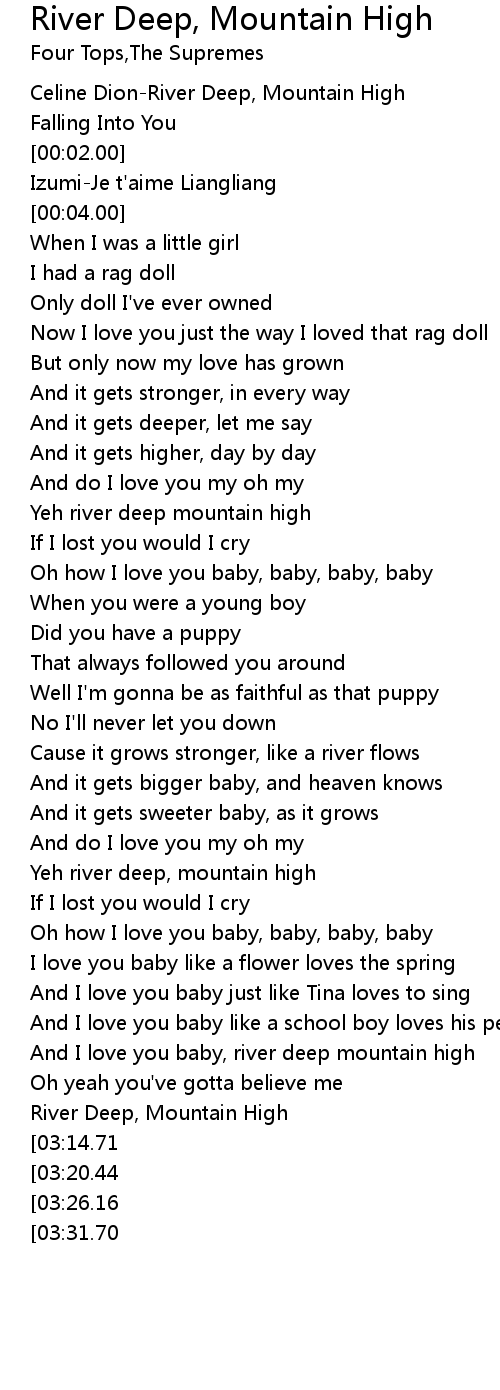 | [02:51.25] | And I love you baby, river deep mountain high |