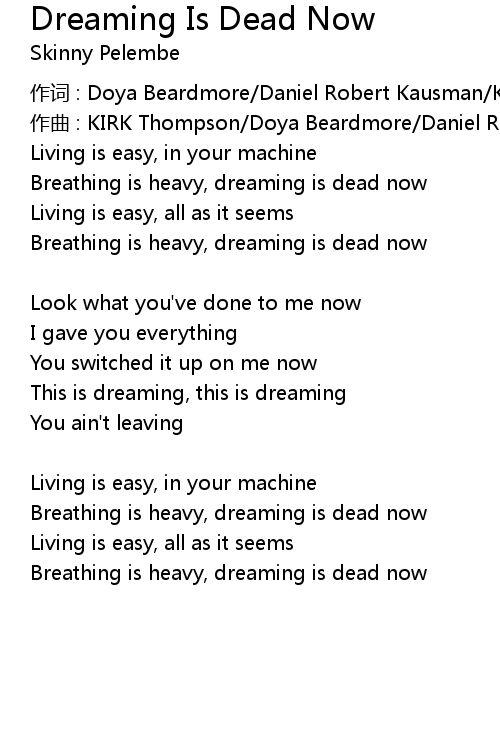 | Song | Dreaming Is Dead Now |