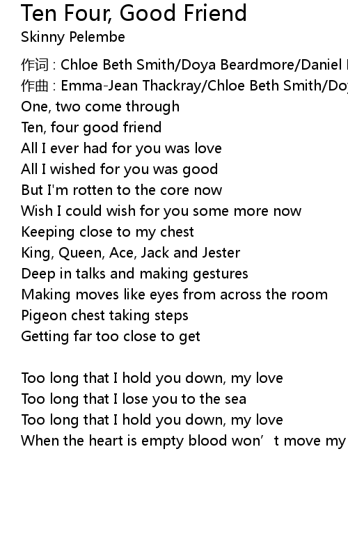 | 作词 : Chloe Beth Smith/Doya Beardmore/Daniel Nicklin/Emma-Jean Thackray | |