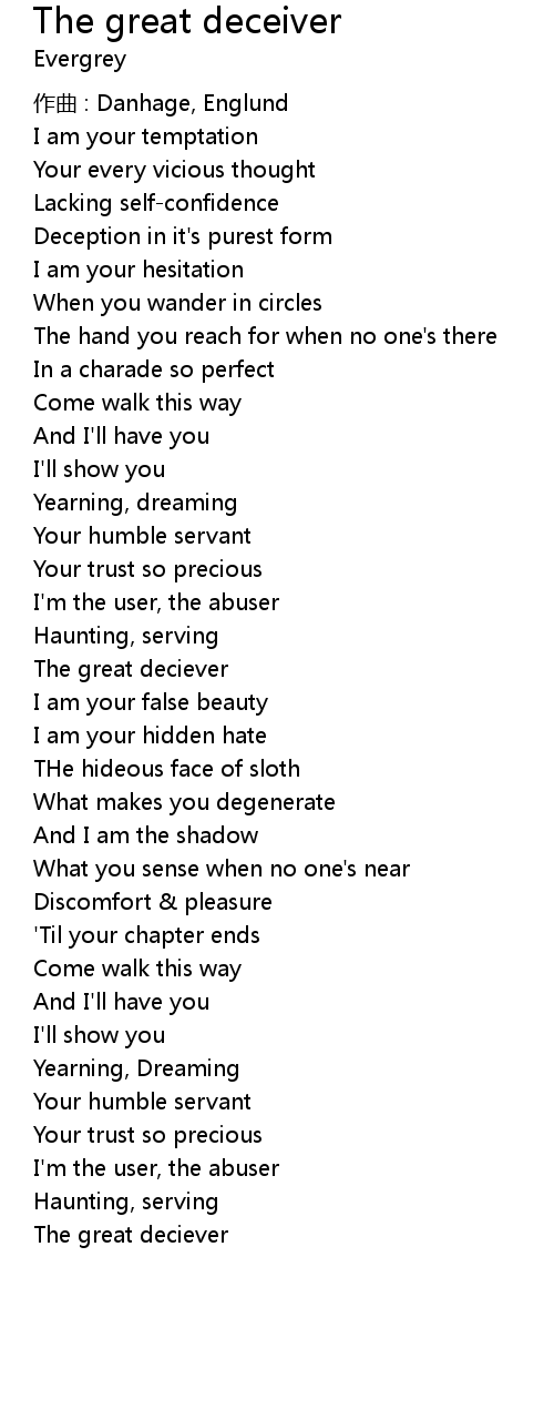 | Song | The great deceiver |