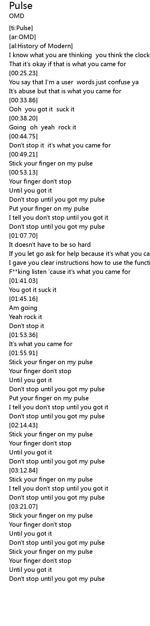 Don't stop until you got my pulse |