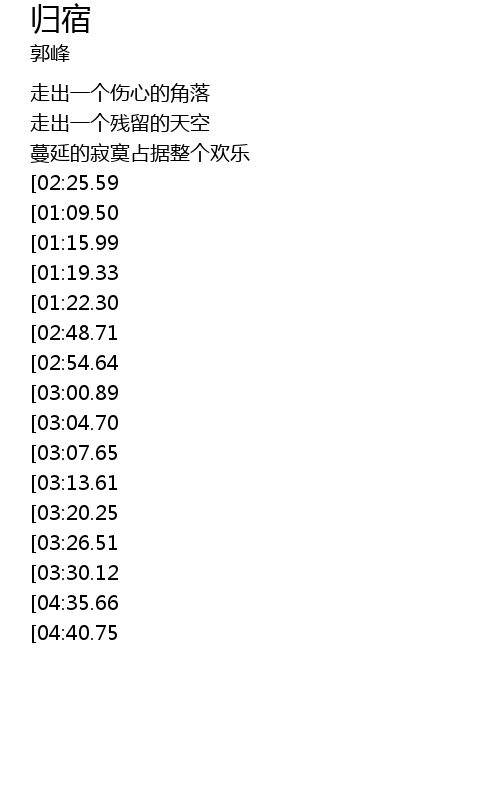 | [04:43.61][04:35.66][03:33.39][02:13.54] | 怎样找到情感的归宿 |