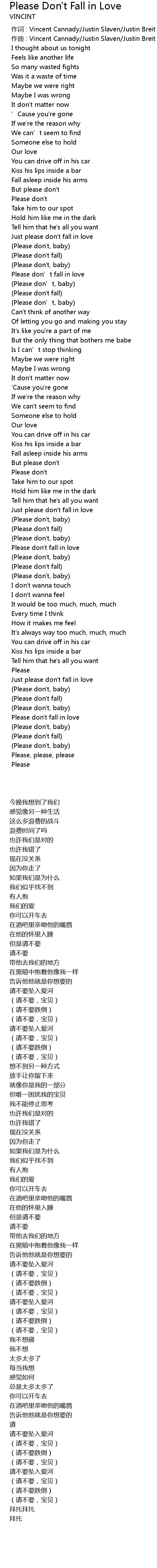 | [03:00.399] | Please don' t, baby |