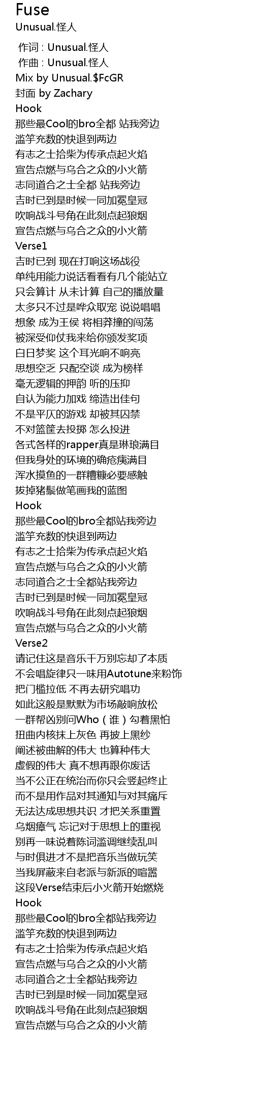 | [00:00.000] | 作词 : Unusual.怪人 |