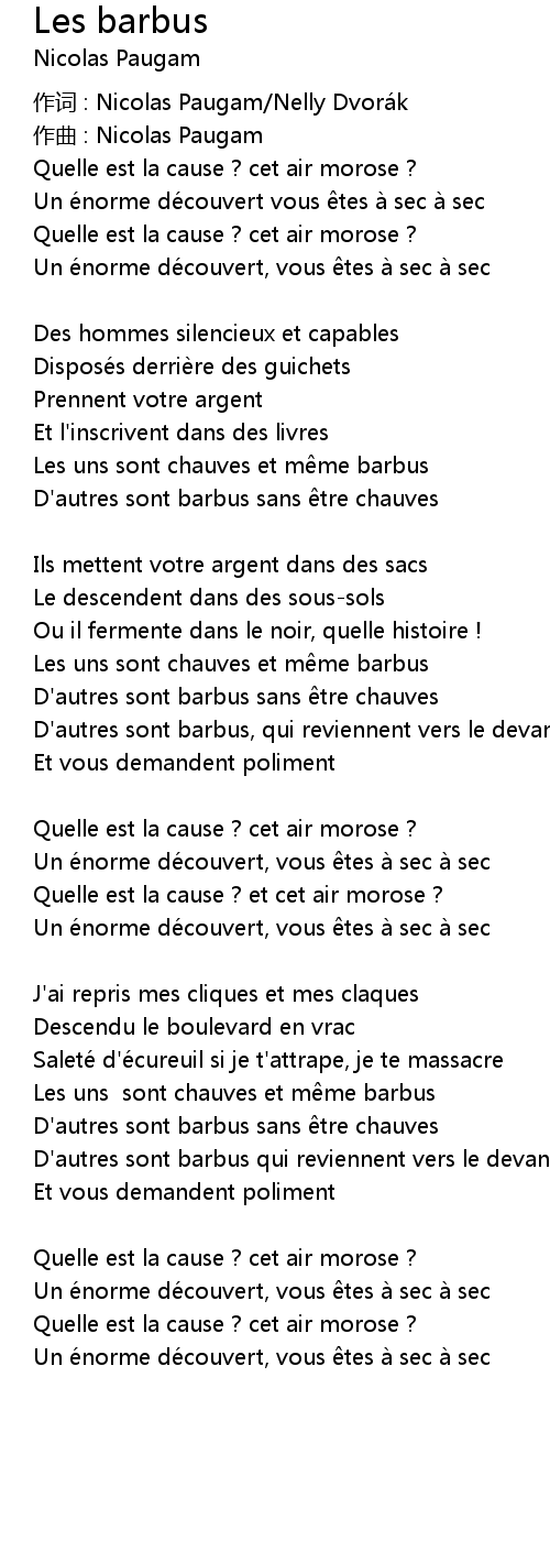 | 作词 : Nicolas Paugam/Nelly Dvorák | |