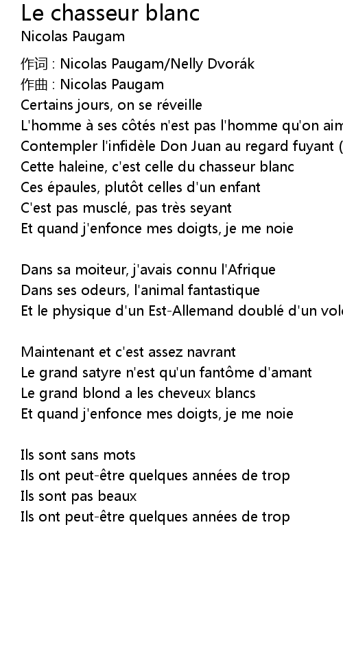 | Song | Le chasseur blanc |