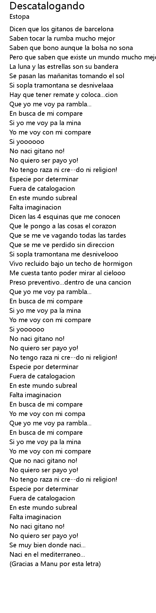 | Gracias a Manu por esta letra |
