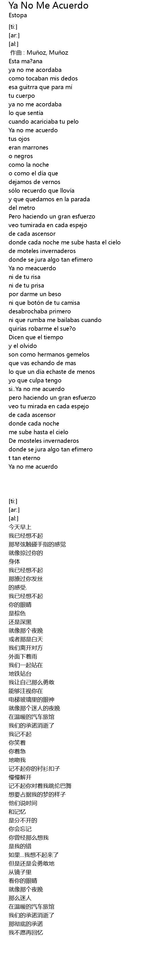 | [00:00.00] | 作曲 : Muñoz, Muñoz |