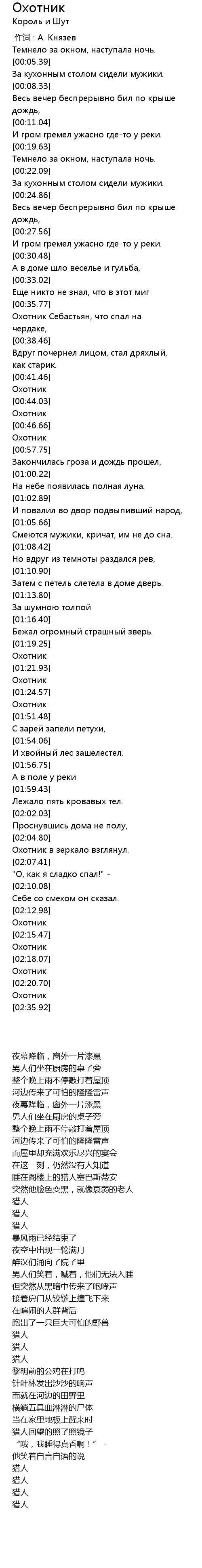 | [02:04.96] | Охотник в зеркало взглянул. |