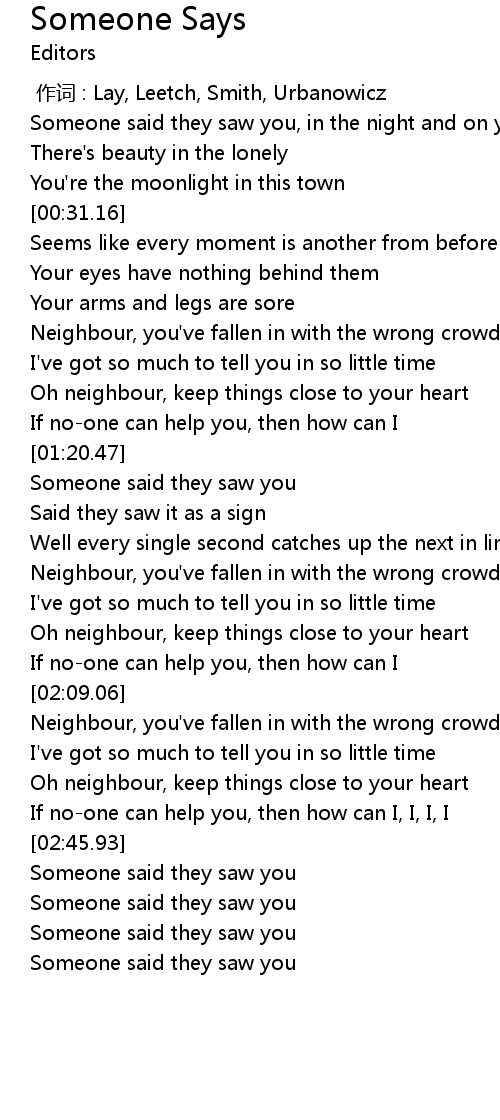 | [00:18.61] | Someone said they saw you, in the night and on your own |