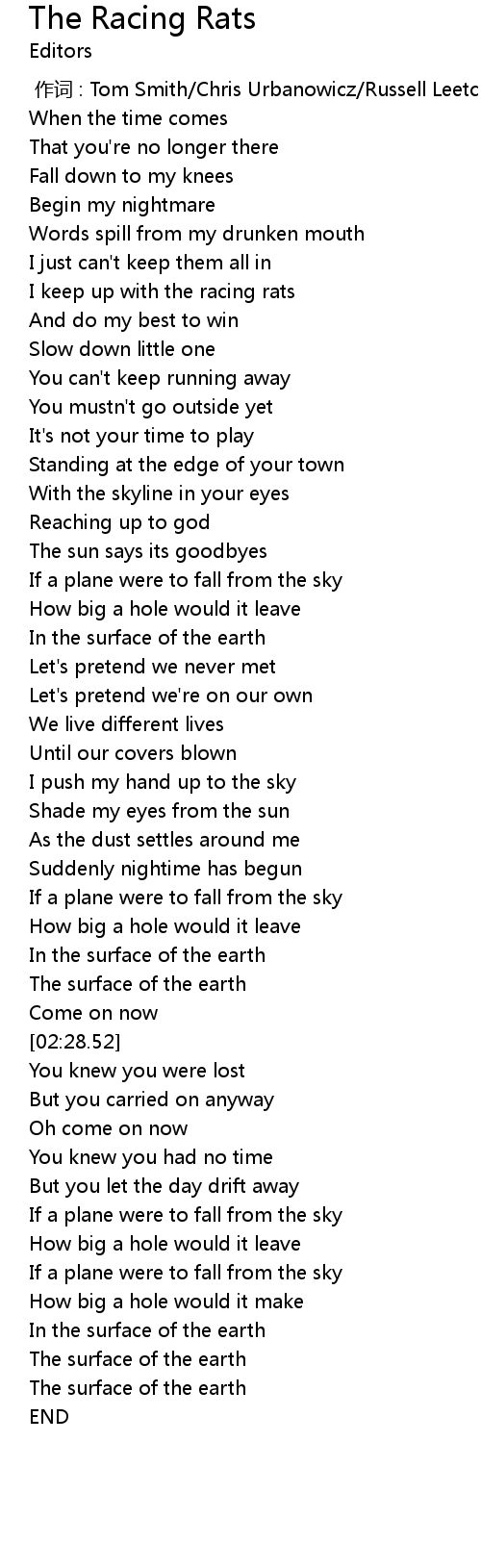 | [00:00.00] | 作词 : Tom Smith/Chris Urbanowicz/Russell Leetch/Ed Lay |