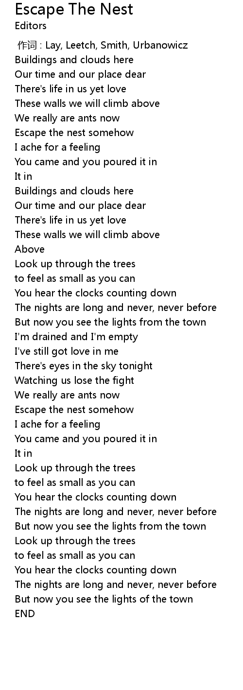 | [00:38.47] | Escape the nest somehow |