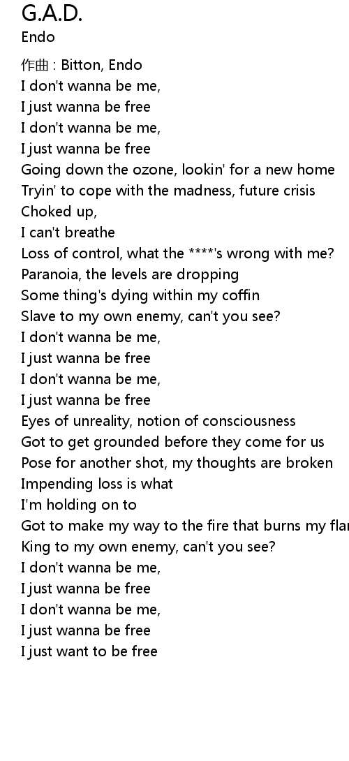 | I don' t wanna be me, | |