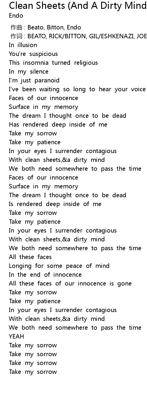 | [00:48.82] | With clean sheets, a dirty mind |