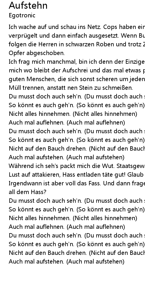 | Song | Aufstehn |