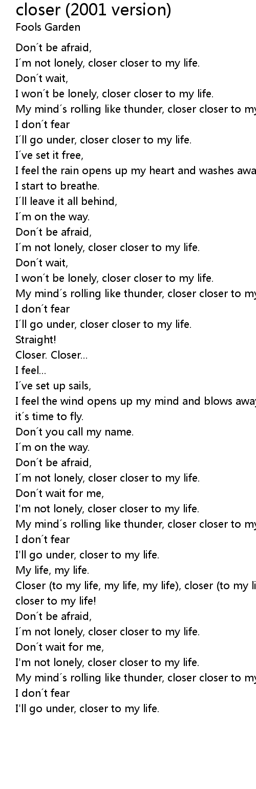 | Closer (to my life, my life, my life), closer (to my life, my life, my life), closer to my life! | |