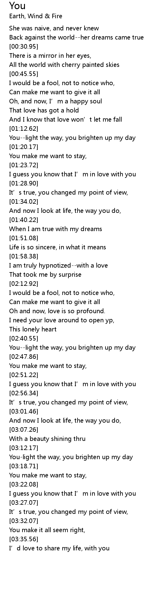 | [03:14.22] | Youlight the way, you brighten up my day |