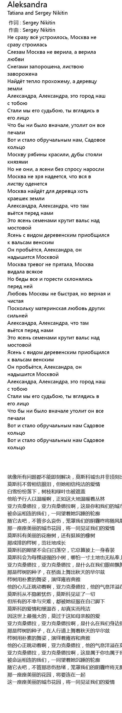 作词 : Sergey Nikitin |