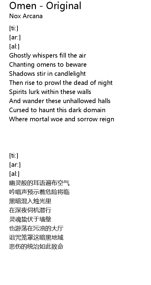 | [00:08.01] | Chanting omens to beware |