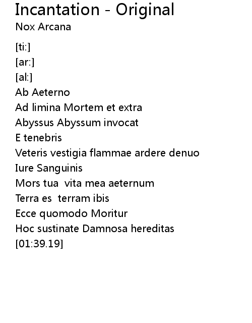 | [01:28.79] | Hoc sustinate Damnosa hereditas |
