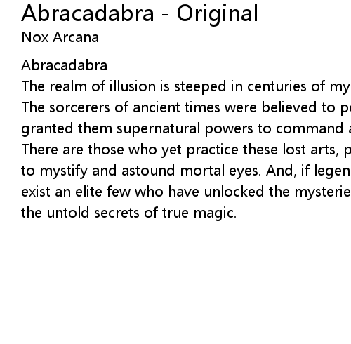 | There are those who yet practice these lost arts, performing spellbinding feats to mystify and astound mortal eyes. And, if legends are to be believed, there exist an elite few who have unlocked the mysteries of the universe to discover the untold secrets of true magic. |