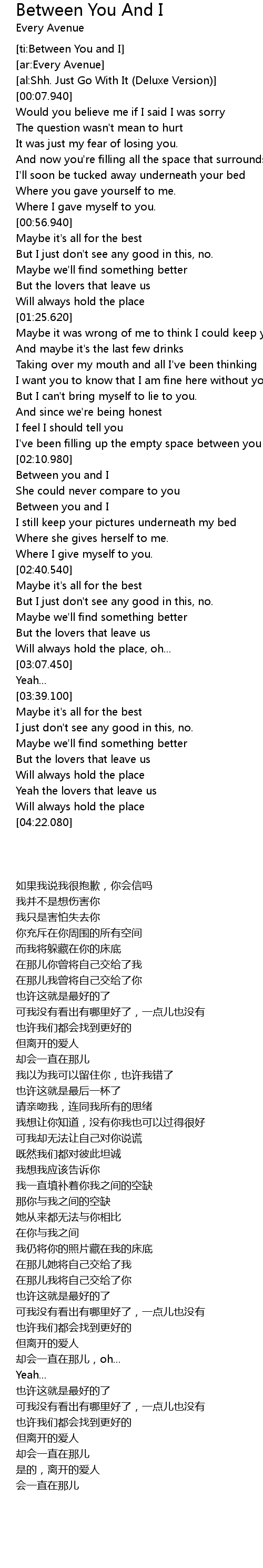 [ti:Between You and I] |