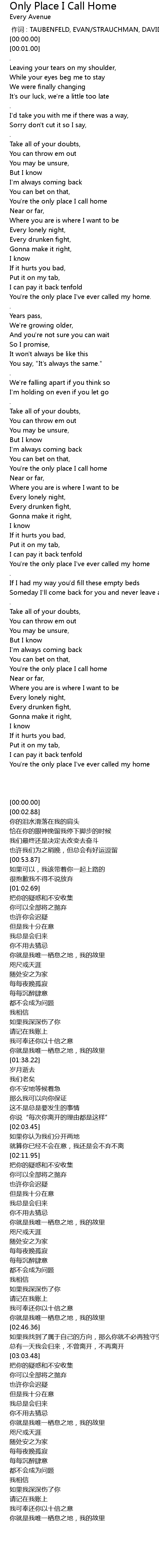 | [03:35.00] | You're the only place I've ever called my home |
