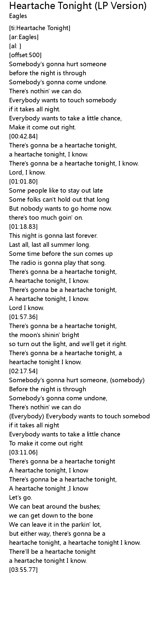 [ti:Heartache Tonight]