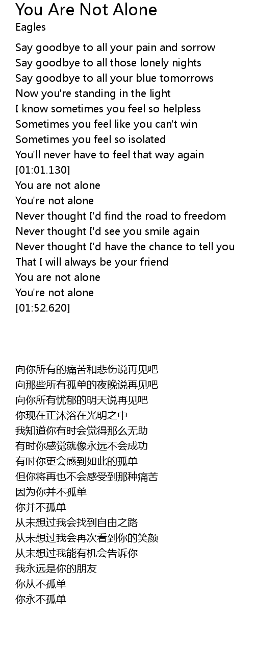 | [00:19.630] | Say goodbye to all those lonely nights |