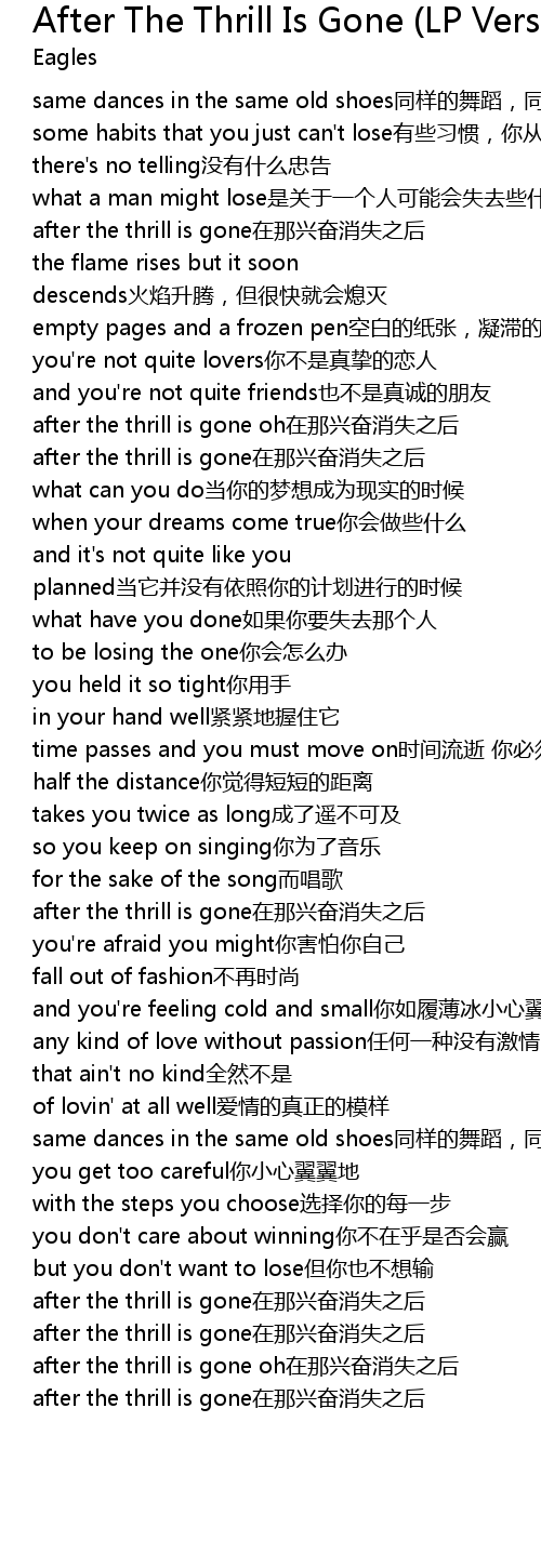 | [00:45.39] | after the thrill is gone在那兴奋消失之后 |
