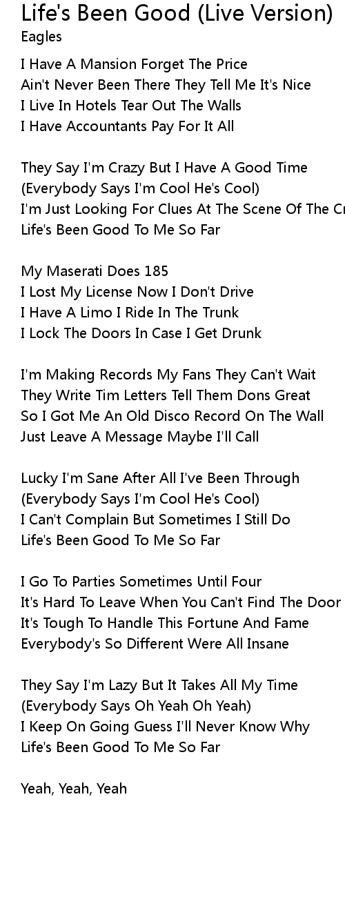 Life's Been Good To Me So Far |