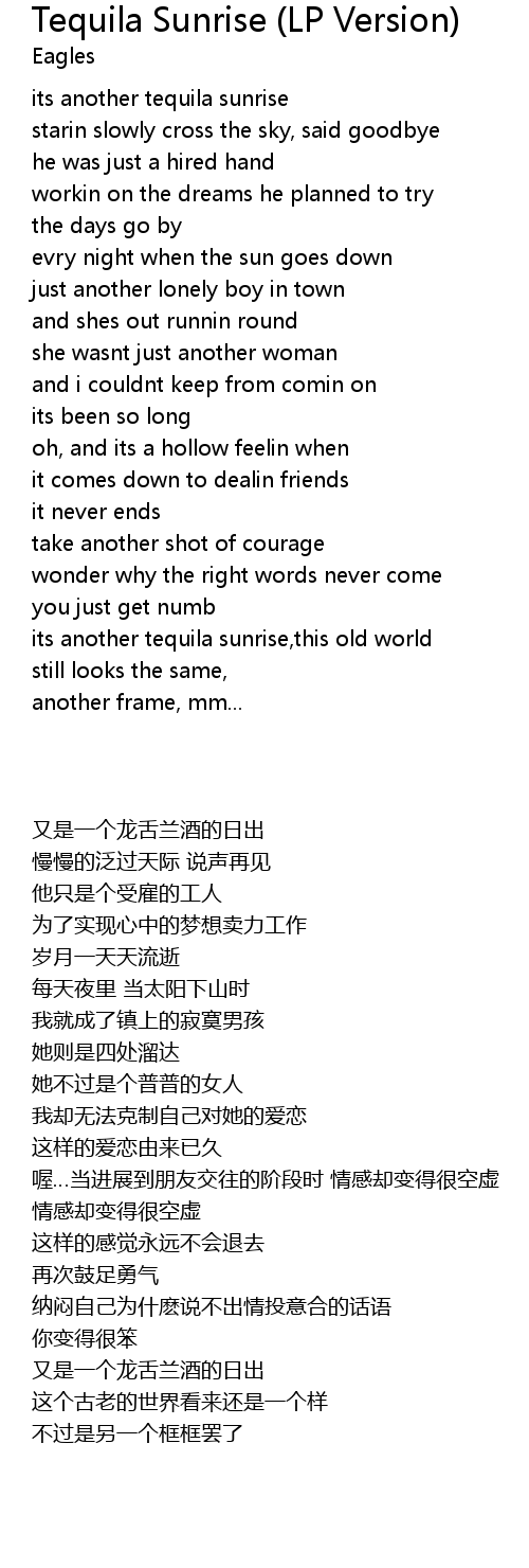 its another tequila sunrise,this old world |