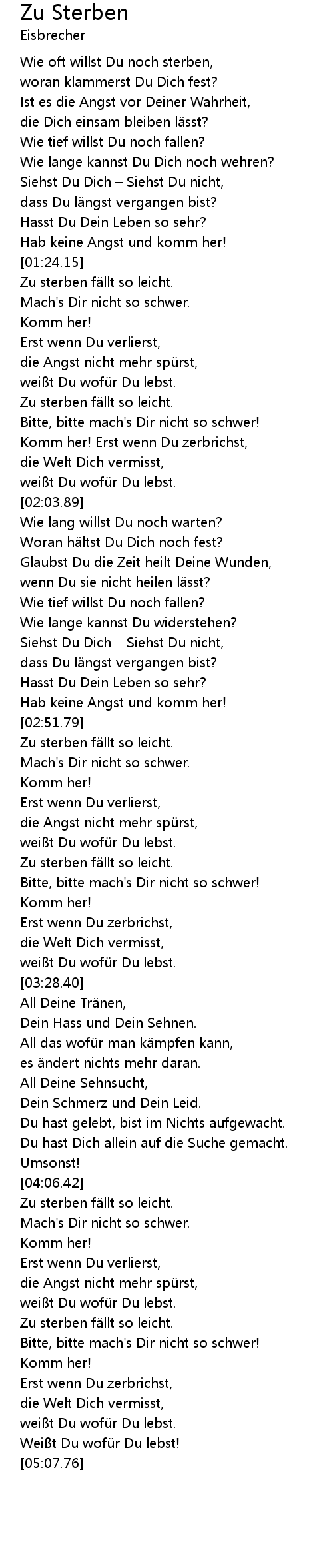 | [00:42.50] | Wie oft willst Du noch sterben, |