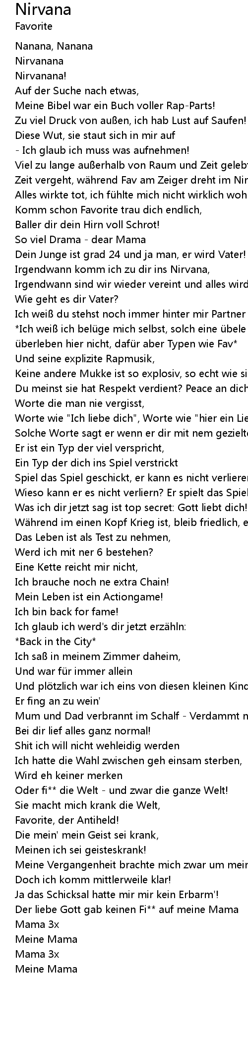 | Ich wei ich belü ge mich selbst, solch eine ü bele Welt, Typen wie ich ü berleben hier nicht, dafü r aber Typen wie Fav | |