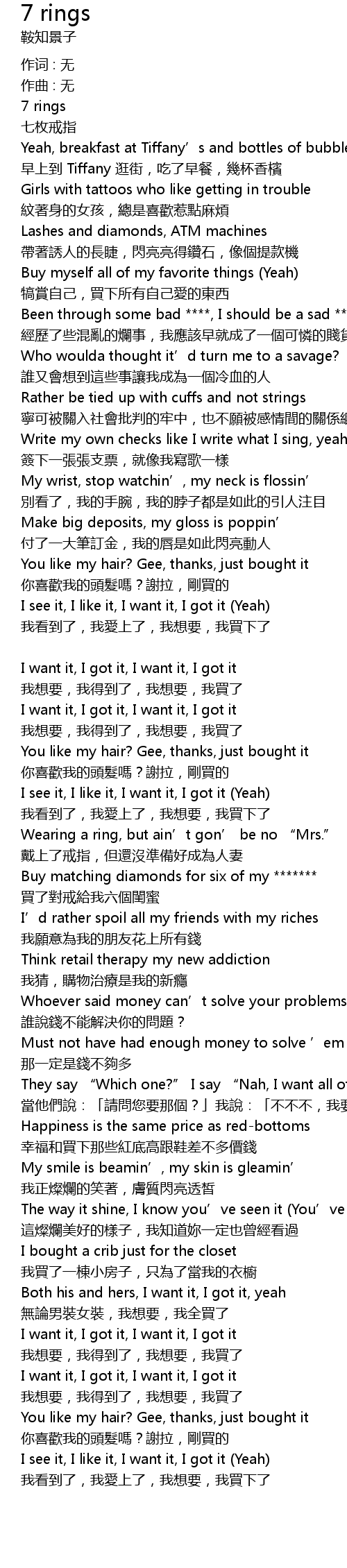 | wǒ xiǎng yào, wǒ dé dào le, wǒ xiǎng yào, wǒ mǎi le | |