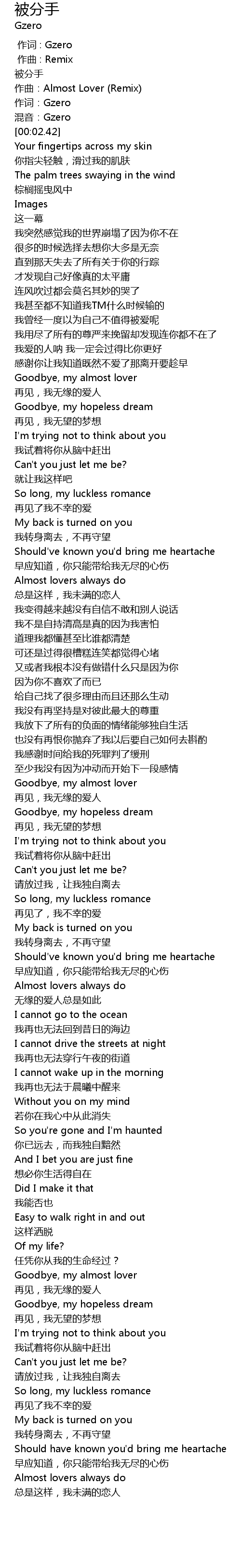 | [00:00.91] | zuò qǔ: Almost Lover Remix |