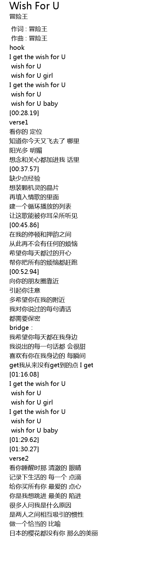 | [01:26.95] | wish for U |