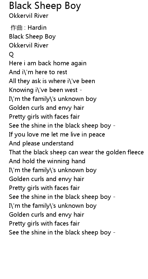 | [00:46.98] | See the shine in the black sheep boy |