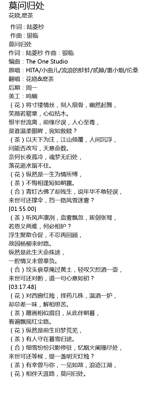 | [00:00.00] | 莫问归处 |
