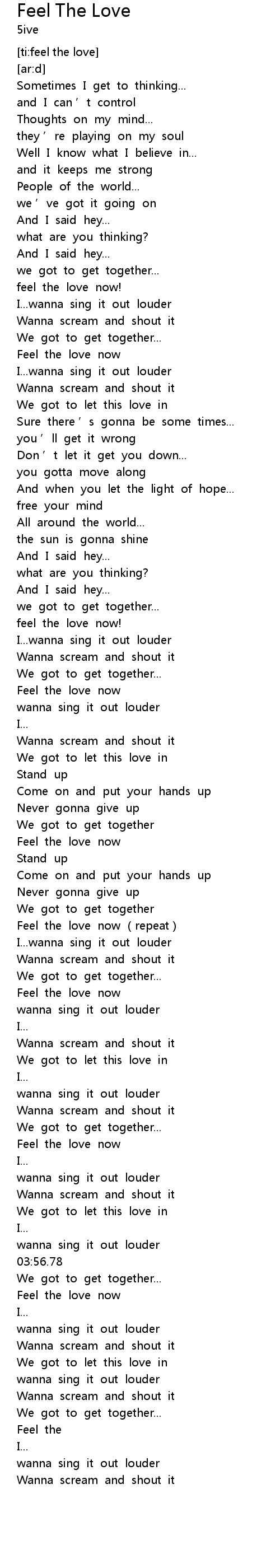 | [03:03.459] | Feel the love now repeat |