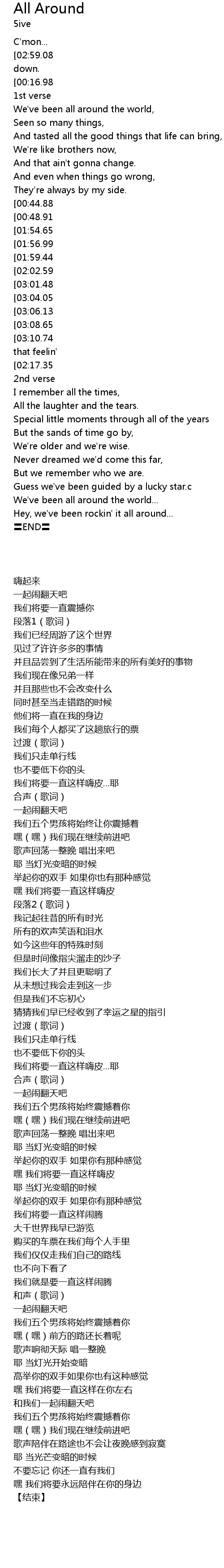 | [02:41.32] | We've been all around the world... |