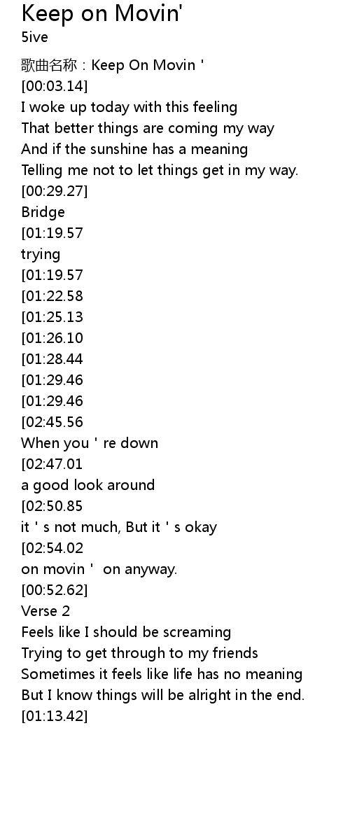 | [00:00.45] | 歌曲名称:Keep On Movin' |