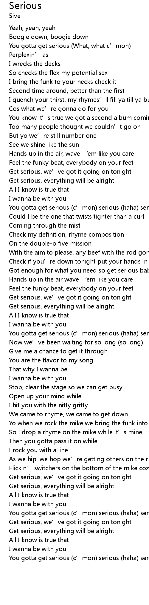 | You gotta get serious (c’mon) serious (haha) serious | |