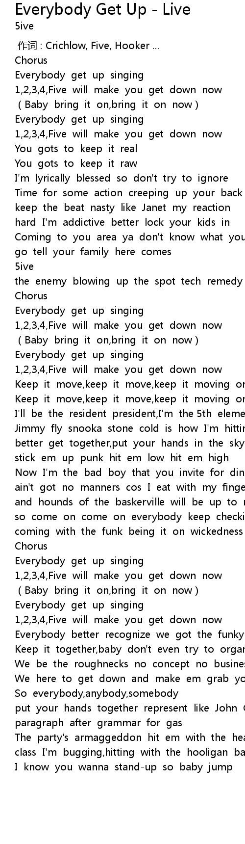 | [01:49.396] | 1,2,3,4,Five will make you get down now |
