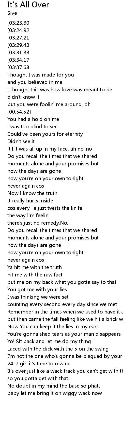 | [03:52.74][03:34.17][02:38.99][01:44.01][00:30.01] | that baby it's all over now |