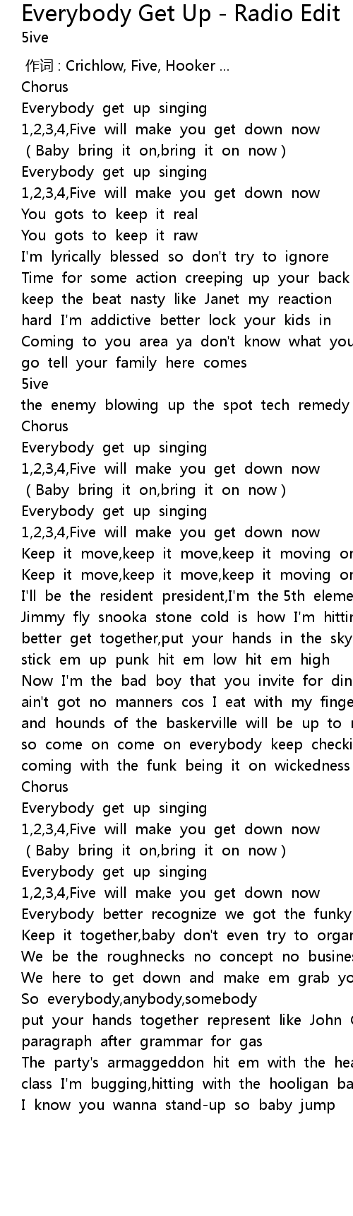 | [01:49.396] | 1,2,3,4,Five will make you get down now |