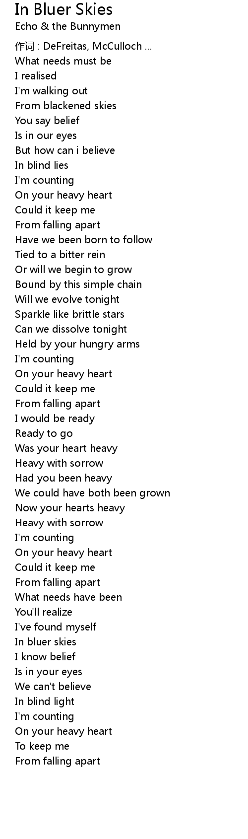 | 作词 : DeFreitas, McCulloch ... | |