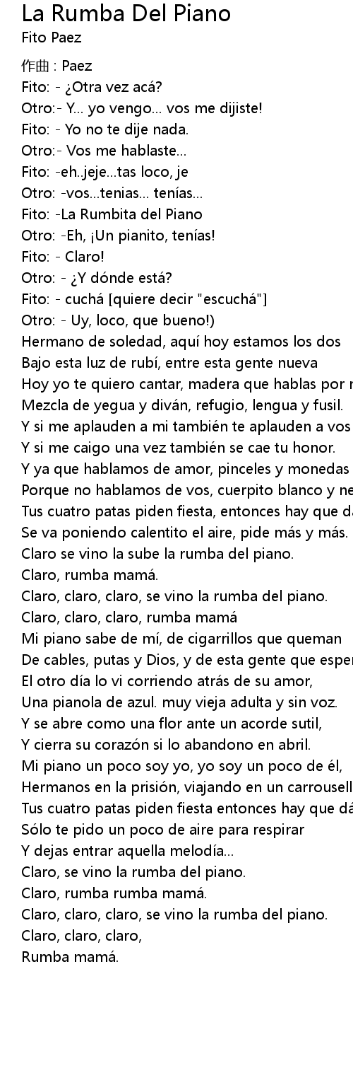 | Claro, claro, claro, se vino la rumba del piano. | |